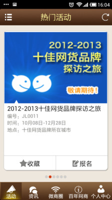 3. 新增了活动收藏和报名功能,用户可以便捷的通过手机报名;
