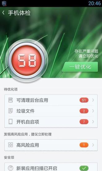 百度安全管家提供给用户全面可靠的安全服务核心安全功能包括:病毒扫面、安全浏览、隐私保护和防骚扰百度安全管家采用国际领先的杀毒引擎TrustGo(av-test杀毒引擎测试第一名),能够有效防止木马入侵、账号盗取、恶意扣费、偷跑流量等问题的发生,保护用户的信息、资费安全防骚扰模块采用高效的骚扰拦截引擎,能够精准识别垃圾短信,帮助用户远离信息骚扰的烦恼隐私保护功能依托主动防御引擎,能够监控应用程序权限调用,当应用程序调用拨打电话、读取通讯录等隐私权限时提醒用户,防止资费损失、隐私泄露