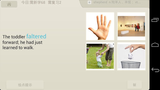 * 横屏的设计是为了让你尽量找个相对较长的时间,双手拿手机,专注的背单词,这样背单词效果更好,额~~~但我们还是会推出竖版的设计的