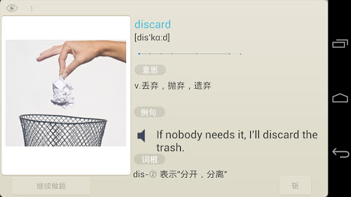 百词斩为每个单词精心挑选图片,配以斩家英文母语使用者老外人肉撰写、朗读的例句,让背单词不再痛苦,让你背下的不再只是孤零零的单词。内涵主流考试雅思,托福,考研,GRE,四六级,专四专八,GMAT等词表,更有3.0版本新增的2000+象形单词和10000+词根拉轰解析(不断增加中),更丰富您的武器储备,让您战斗力猛增,一朝斩断与英语多年恩怨!