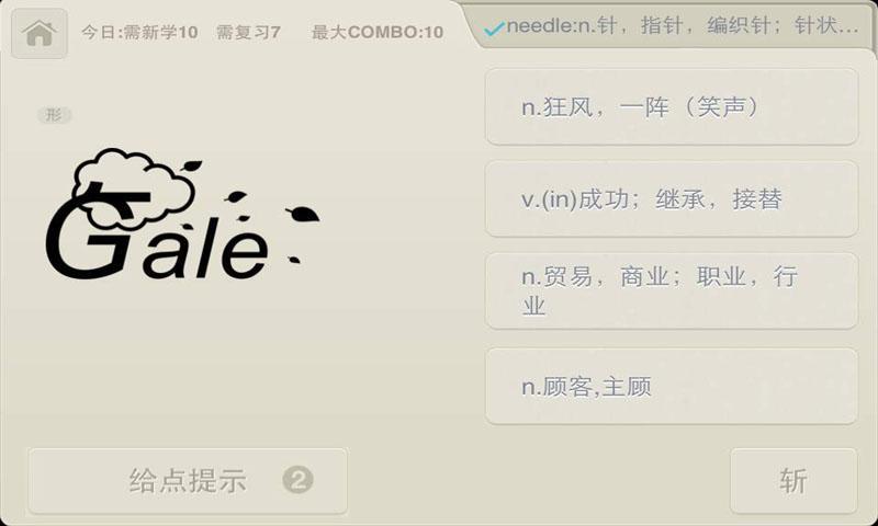 '百词斩'是由出品'寮堑ゴ'的成都超超超超有爱公司全新推出的-专为广大英语考试er们准备的-有效又有爱的'英语单词大杀器'。内含各主流考试的词汇表,超过15000张单词卡片(不断增加中),配以全情景配图式记忆和全老外真人朗读例句。是时候了断你和英语单词的多年恩怨了!