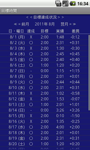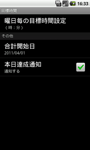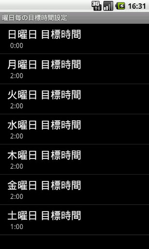 ・1日の目標時間は曜日別に時間設定できます。