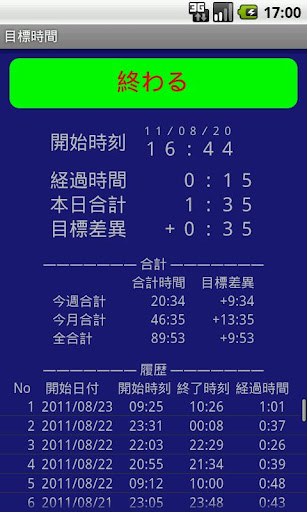 ・当日の目標時間は随時設定変更できます。