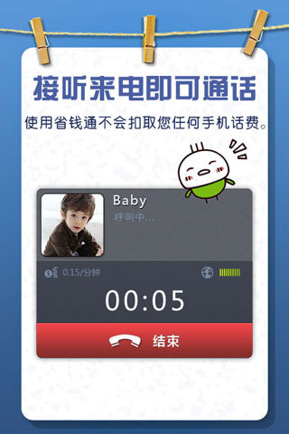 省钱通网络电话音质清晰,接通率100%,360手机助手官方权威推荐的网络电话软件,深受5000万广大用户喜爱现下载注册省钱通即可获赠最高60分钟通话时长,推荐好友注册又可获赠5分钟/次,不充值也可享受免费打电话哦!