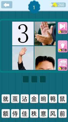 根据游戏中所提供的四张图片,选择文字按钮,输入正确的答案!