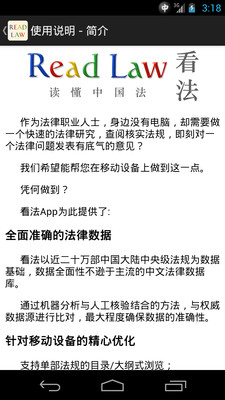 看法不仅仅是一个移动的法规汇编和法规查阅工具,而且是一个全功能的移动法律数据库,未来甚至会成为一个移动的法律垂直搜索引擎。