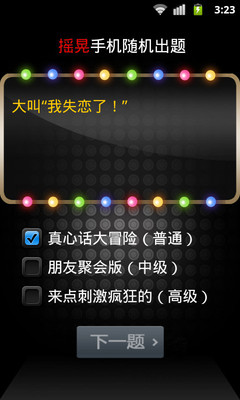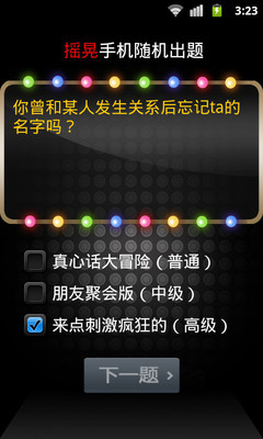 派对聚会喝酒后必玩真心话大冒险,有些问题不好意思问出口,摇晃手机,让本应用帮你问!