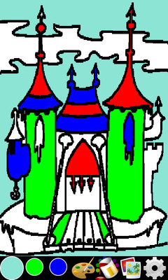 这个程序可以让孩子选择画线(3宽度选项)或填充的颜色绘制方法。点击模式按钮,它们之间进行切换。
