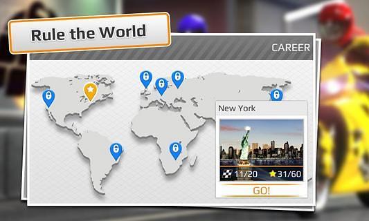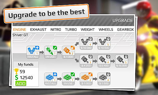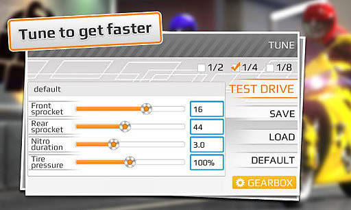 《短程高速摩托赛》(Drag Racing: Bike Edition),最流行的赛车游戏“短程高速赛车”的游戏扩展版。 游戏中你可以享受到与现实相同的摩托车物理引擎,感受真实的图形画面。 游戏特点: 1.可以通过在线模式与上万名玩家同时竞技; 2.获取成就,具有全球名次排行榜; 3.可以再Facebook和Twitter上分享你的最佳成就; 4.升级以获得性能更好的赛车; 5.了解你赛车的性能,你可以跑的更快。 【基本信息】 作者:Creative Mobile 更新时间:2014-09-01 版本:1.1.14 系统:Android 2.3以上 语言:英文 【更新内容】 1.新增游戏模式“最好成绩”,这种模式下你可以挑战每张地图的2.世界纪录速度 3.增加区域排行榜 4.各种免费获得金币的途径 5.修复游戏UI,改进游戏性能