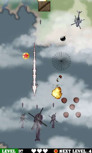 包含6個世界(新手,經典,專業,流星,瘋狂的老闆),並且每個世界有66個級別,每個級別增加難度。要完成一個級別,你必須躲避石頭與你的直升機,炸彈,流星,敵方導彈,盒等......並收集被消除敵人獲得獎牌。