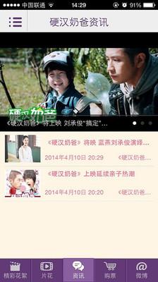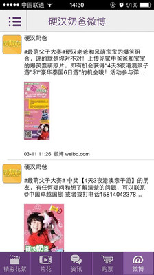 4. 联动热门社区,所有剧照、视频、资讯、活动均可带评论转发,让您及时方便与朋友分享喜悦;时时呈现《硬汉奶爸》官方微博讯息,特别关注,专属享受。