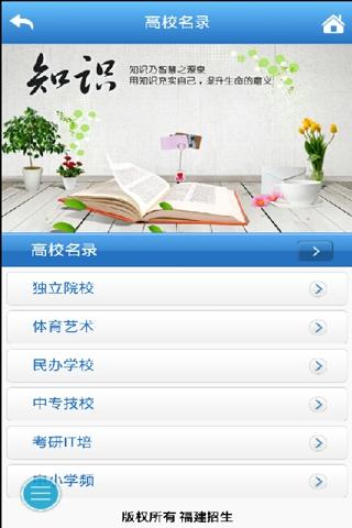福建招生客户端是大型的综合教育门户,主要发布高考、考研、自考、成人高考、招聘、就业、留学等权威的招考、招生、就业、辅导信息等各类学习招生信息。同时用户可以通过在线拨打企业电话和在线留言方式与企业联系。