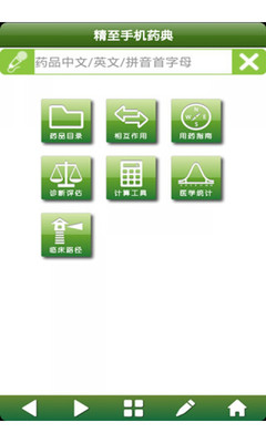 移动药典,1000余种中成药使用说明,20个临床用药指南,300余项临床路径,17个常用诊断评估工具,3个医学统计工具,便利的注释和收藏功能等等