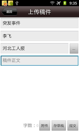 方正畅享移动采编系统(Android版)提供了在Android手机上,针对文、图、音视频等多媒体稿件和素材采集功能,提升报社对突发事件的快速响应能力、对新闻内容的多媒体播报能力以及远程记者与报社总部的及时互动能力。 该系统通过与新闻业务系统(如畅享全媒体新闻采集系统、文韬采编系统、翔宇网站内容管理系统等)的无缝对接,在业务流程设置、数据存储与用户管理上融为一体,延伸了报社移动采访、快速报道的有效渠道。