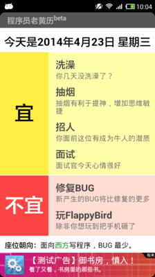 3.本老黄历内容是程序生成的,因为只有这样程序员才会信。