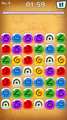 - 5个符文连成一线时,获得神奇的任意符,它可以跟任何符文交换,场上所有同类符文都会变身成这个符文,一起消除。好爽快。
