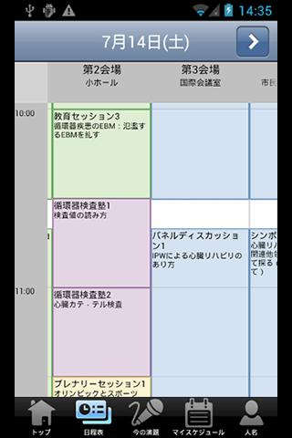 演題ごとにブックマークを付けると、デイリー形式のカレンダーで表示します。