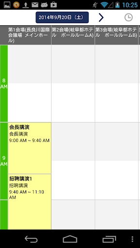 また、画面上部の時計アイコンで表示切替すると、マイスケジュールに登録した講演を含むセッションのみに絞り込んで表示することができます。