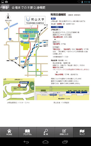 各演題本文のページの右上部にある"マップ"のボタンを押すと、地図上に開催場所を表示します。