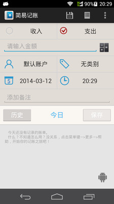 这是一款以简洁明了的方式设计的记账理财类软件,保留了记账理财类软件的主要功能,精简操作步骤,剔除了繁琐的选项,并且使用少量的权限,旨在以最快的方式达成您记账理财的目的。同时您不用担心数据丢失,因为每次退出程序都会自动备份一次,同时还拥有数据导入导出和同步功能,确保数据安全完整。本软件支持英文,繁体中文和简体中文,并有多账户功能,非常适合个人或家庭用户使用。