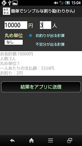 ささっと、簡単に割り勘の勘定計算をしたい時にどうぞ♪