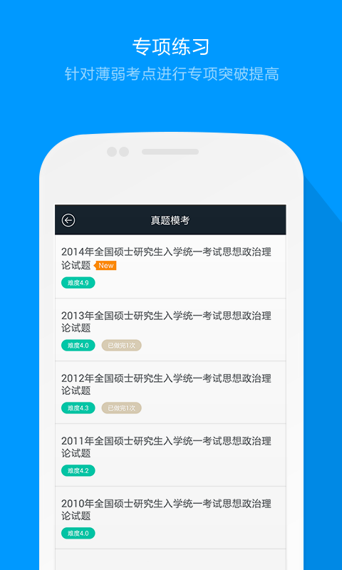 3.智能评估精准预测:每次练习完即可对答案,系统根据历次练习记录智能评估你对知识点的掌握程度,并能精准预测考分。