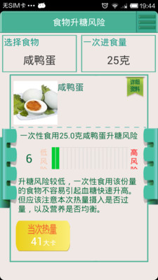 很方便地输入食物和份量,立刻为您计算出升糖指数、热量以及升糖负荷,告诉您该餐次的餐后2小时血糖升糖风险指数。从此您能明明白白地吃,应该不应该吃,应该吃多少,怎么吃效果最好,点点糖尿病升糖指数计算器就知道啦。