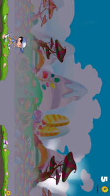 这是一个熊孩子为了吃糖变身跑酷超人的游戏