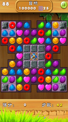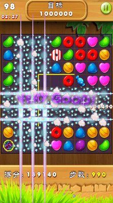 1、在屏幕上滑动交换两个糖果,三个或以上的在同一线上并排时,就可以爆破。