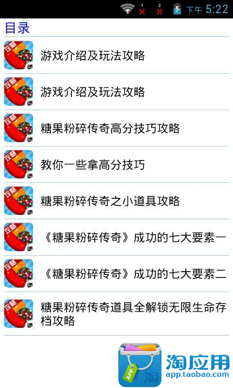 这款软件提供了糖果粉碎传奇这款游戏的各种秘籍和指南,可以帮助您过关游戏,更好地享受游戏给您带来的乐趣。游戏秘籍并非官方,但是希望可以帮助到您,祝您游戏愉快!
