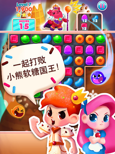 - 在熱火朝天的戰斗模式中和小熊軟糖國王對抗。在他粘住你的糖果前湊成大配對讓其目瞪口呆!