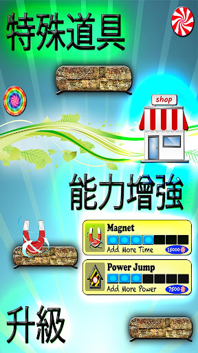 你的任務是跳的越高越好,並盡可能收集許多的糖果你可以.收集越多糖果越好,因為它們可以解開特殊的升級功能,更多跳躍者和其他未知的世界.