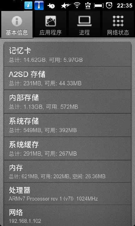 系统查看:可以查看手机运存、内存、内存卡、电池等的基本情况;