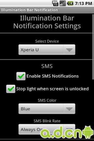 Illumination Bar Notification是一款可以针对索尼机器的透明条指示灯进行控制的软件,可以设置在有来电或者短信的时候让透明条指示灯闪烁提醒,由于硬体上的限制,Xperia S 及 P 只能发出白光, Xperia U 则可以变更不同的颜色,包括红、绿、蓝等。