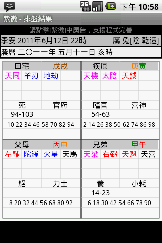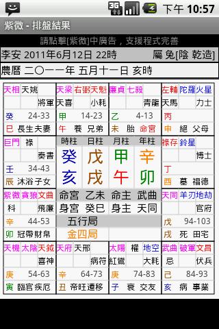 可根據輸入的資訊,自動排出十二宮顯示:星曜, 干支, 宮名, 十二長生, 博士十二神, 大限和小限資訊;