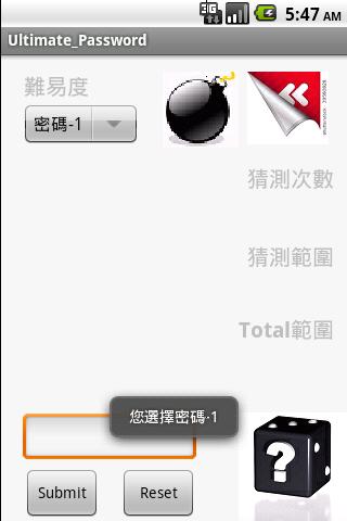 規則二:選好難易度後,要先點選”骰子”的圖示,系統會自動產生一組終極密碼,但使用者不會知道。