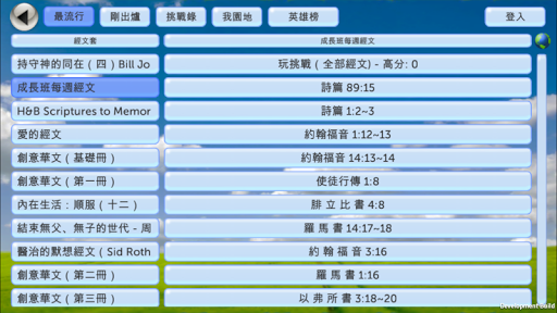■ 挑戰模式加深經文組的記憶。經文組是由相關的經文所組成。玩遊戲者也可以自己建立。