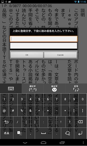 ※このアプリには「N2 TTS」や「ドキュメントトーカ(製品版)」などの日本語TTSが必須です。(この2つのアプリでテストしました)