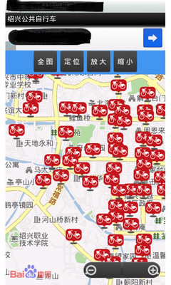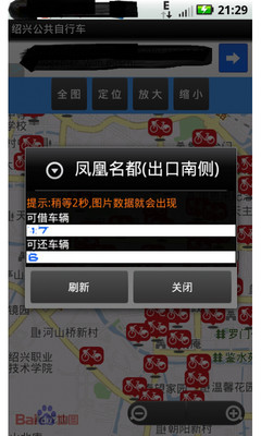 2,应用显示绍兴地区公共自行车租赁点位置及其实时的可租可还数信息.