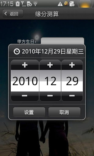 2个人之间究竟有多少机缘?发生在2人之间的种种事情如何得到解释?[缘分测算]也许能够帮到您。[缘分测算]软件从时间生物学的角度解释了人与人之间的机缘关系,包括生理缘分、情感缘分及智慧缘分,用百分制来定量描述缘分的大小,最低为0,最高为100%,指数越高表明2人之间的相容性越好,缘分越强,发生联系的可能性也越大。
