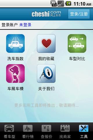 为网友提供洗车指数、车型对比、车展车模等实用工具。更多实用工具会陆续放出,期待您的持续关注。