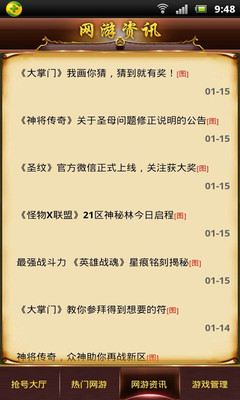 你还在为不知什么手机网游好玩而苦恼吗?你还在为错过热门游戏和错过参与厂商送礼活动而失落吗?如果你渴望成为畅游游戏的屌丝一族,那么游戏开服助手你绝对不容错过,海量最新最火游戏资讯、攻略、游戏大礼包一个开服助手就搞定.2012游戏开服助手强势来袭,让你hold不住.最清新的界面,最快捷的操作方式,新服游戏领衔掌握,让你玩转游戏,成为游戏达人.成为最顶尖的游戏达人。