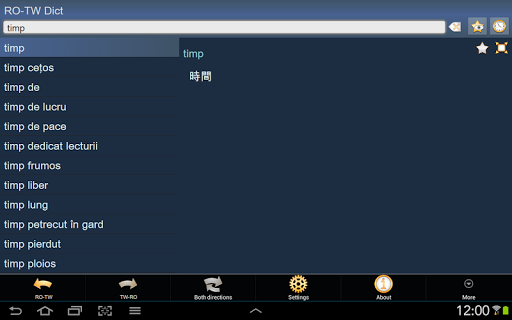 這是 羅馬尼亞文 - 中文(繁體) 以及 中文(繁體) - 羅馬尼亞文 字典; Romanian - Chinese Traditional and Chinese Traditional - Romanian dictionary / Dicționar Română - Chineză (Tradiţională) și Chineză (Tradiţională) - Română。該應用程式離線,無需網際網路連接。