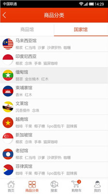 3.特色功能:以泰国、马来西亚、新加坡、越南、菲律宾、印尼等东南亚11国场馆列表展示各国特色商品,足不出户逛遍东南亚!