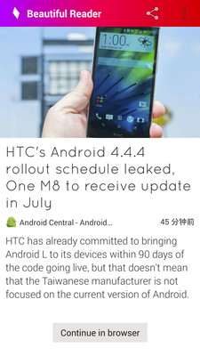 Beautiful Reader是一款设计精美的Feedly阅读器应用,登陆Feedly账号后可以通过翻页的方式在该应用中阅读你订阅的Feedly RSS源,不过想要阅读详细的资源的话,你需要打开浏览器才行。