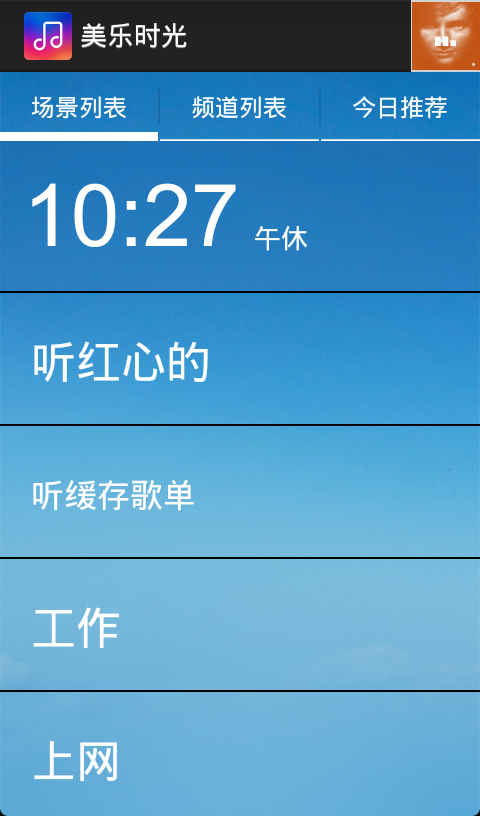 音乐源于生活,因此我们用场景来作为音乐和生活的连接点。也许您不知道自己现在具体想听什么类型的音乐,但您肯定知道自己现在正在做什么。