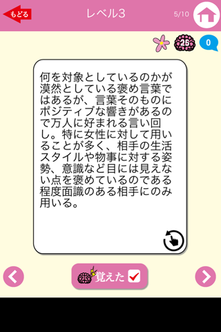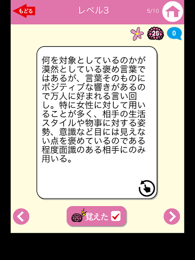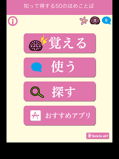 『知って得する50のほめことば』は、ほめ言葉を覚えて実践するためのアプリです。