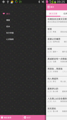 美文app是一款,界面简洁,速度不错,阅读页面主要模块有美文、博客、优米、早报、心灵咖啡。可以设置同步间隔、缓存大小和位置,离线阅读设置等常规设置