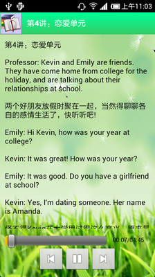 本应用包含美语三级跳的全部初级教程,一共24课,每课都配有文章显示,以及相应的音频广播,边听边看,绝对是您学习英语的最佳帮手。