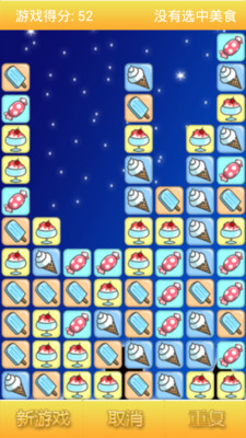 美食消消消,非常好玩,耐玩的游戏。一起来消除美食,挑战高分的快感吧。玩法:只有点击2个或者以上的美食消除,即可得分。同时消除的美食越多,得分越高。剩余的美食少的话,还有奖励哦。